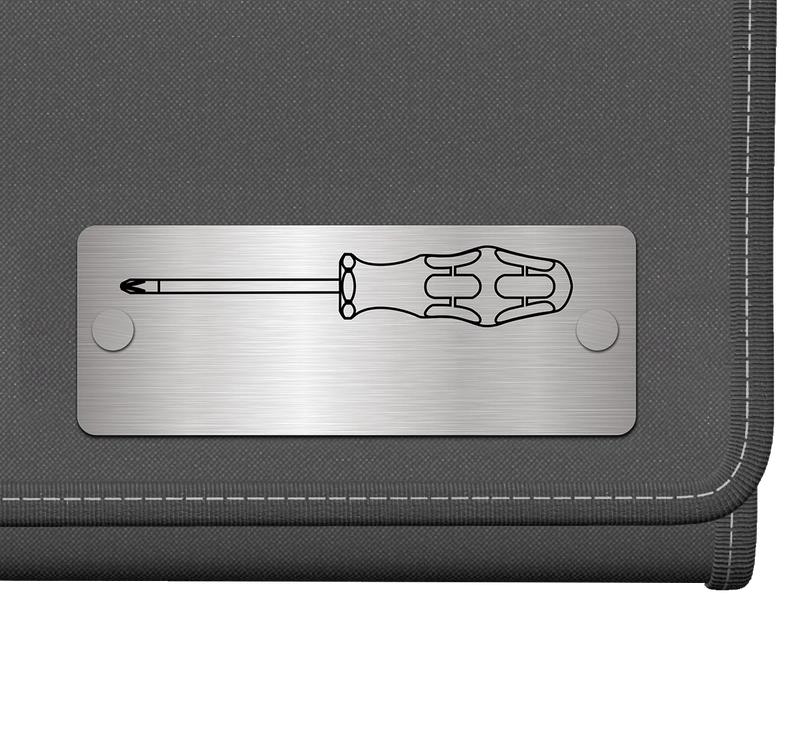In addition to the textile box, there are also three of our racks, so you can hang the set nicely sorted in your screwdriver corner on the wall and always have the right screwdriver handy!
