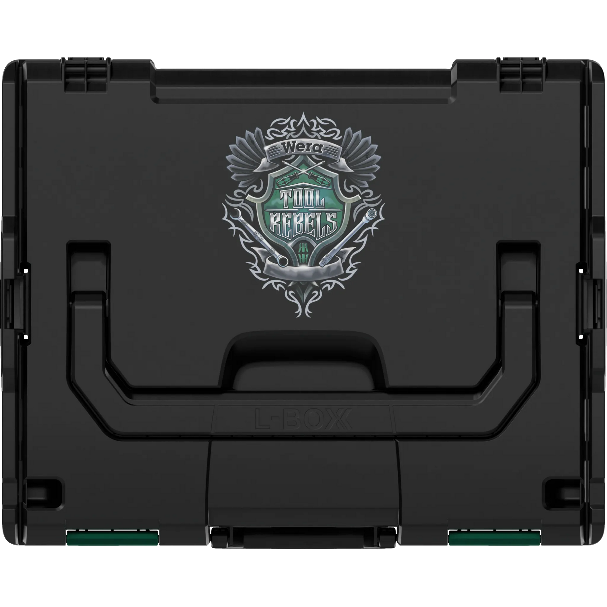 Presented in the exclusive Tool Rebel design, the L-Boxx comes in sleek black with a distinctive logo on the lid and the signature Wera green clasps. Made from impact- and shock-resistant ABS plastic, it offers 8.8 litres of storage for your most essential tools. With a carrying capacity of up to 25 kg and a lid that withstands loads of up to 100 kg, it’s built for tough use. Thanks to the patented click system, the L-Boxx 102 is fully compatible with the entire L-Boxx range and standard vehicle fittings.