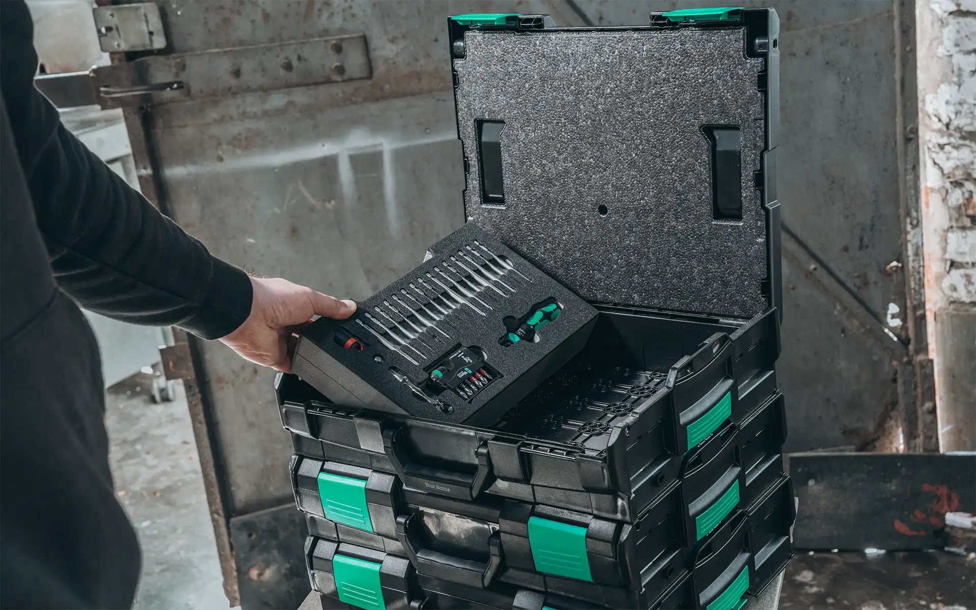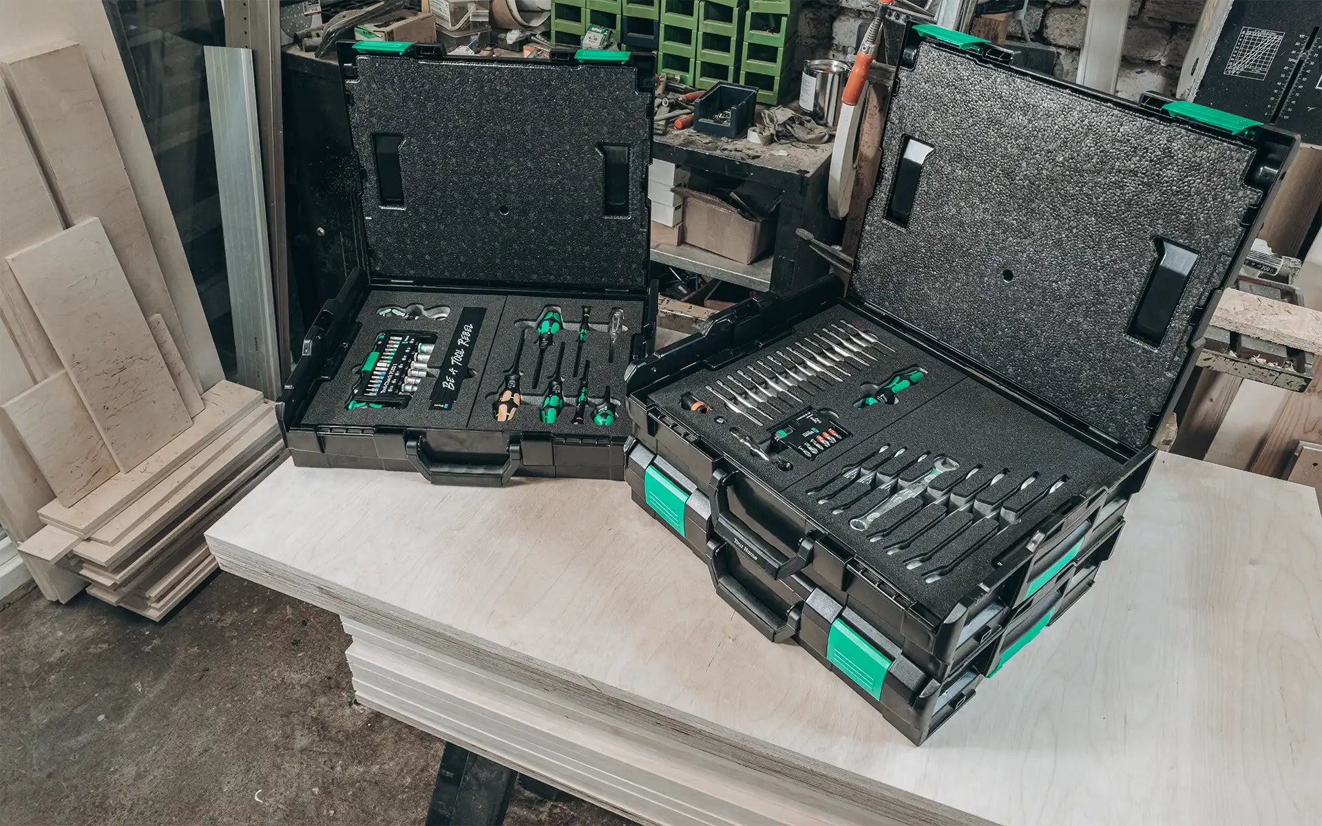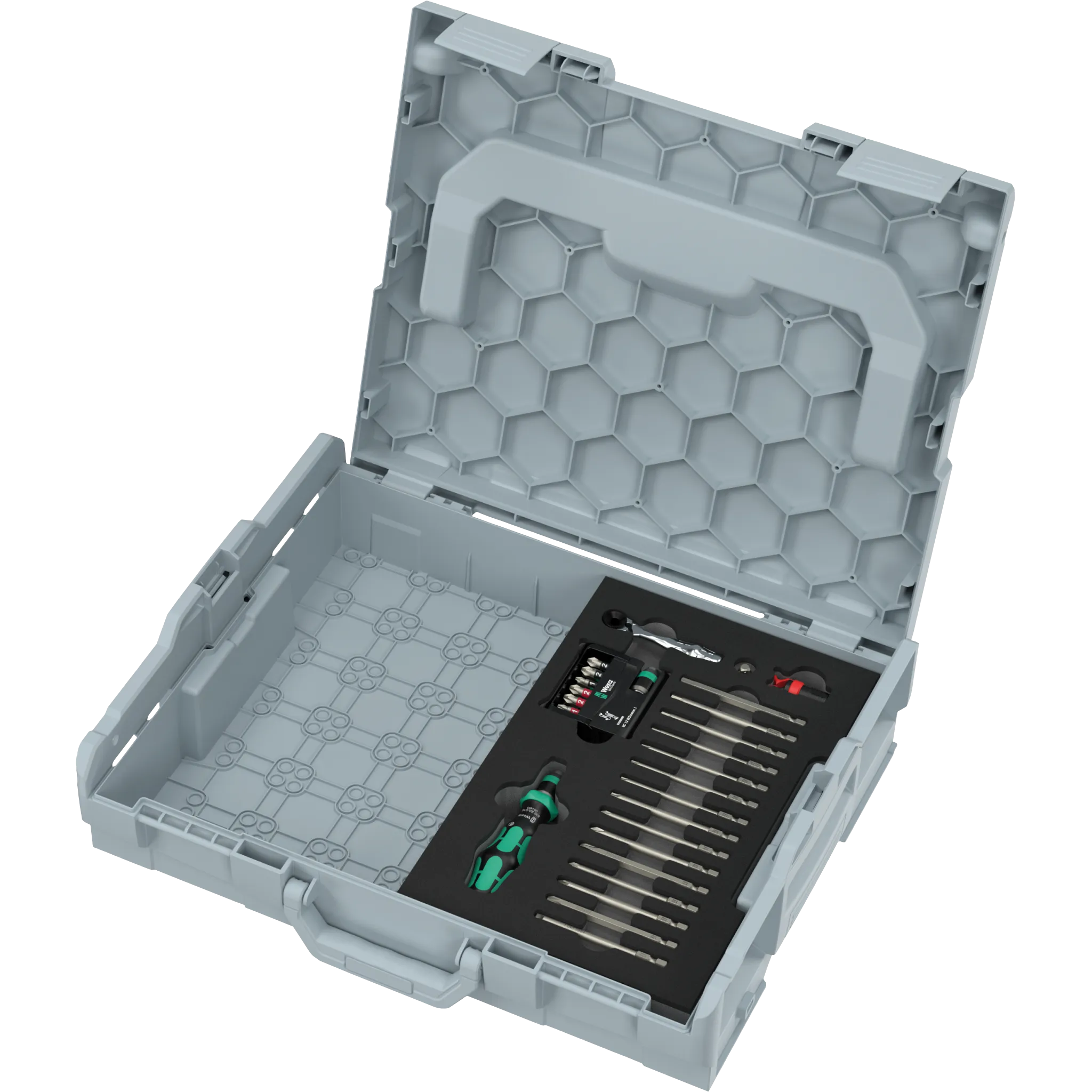 The Screwdriver Interchangeable Blades Set in Inlay combines flexible interchangeable blades with a ratcheting handle for tight spaces and steady control. The Bit-Check covers common profiles, while the Zyklop Mini bit ratchet adds speed when clearance is limited. With the Rapidaptor quick-change chuck, you swap bits in seconds and use them by hand or with your drill/driver. Everything sits well organised in the foam inlay, ready for your workshop, service jobs or home projects. Compact, durable and unmistakably Wera – for clean results without fuss.