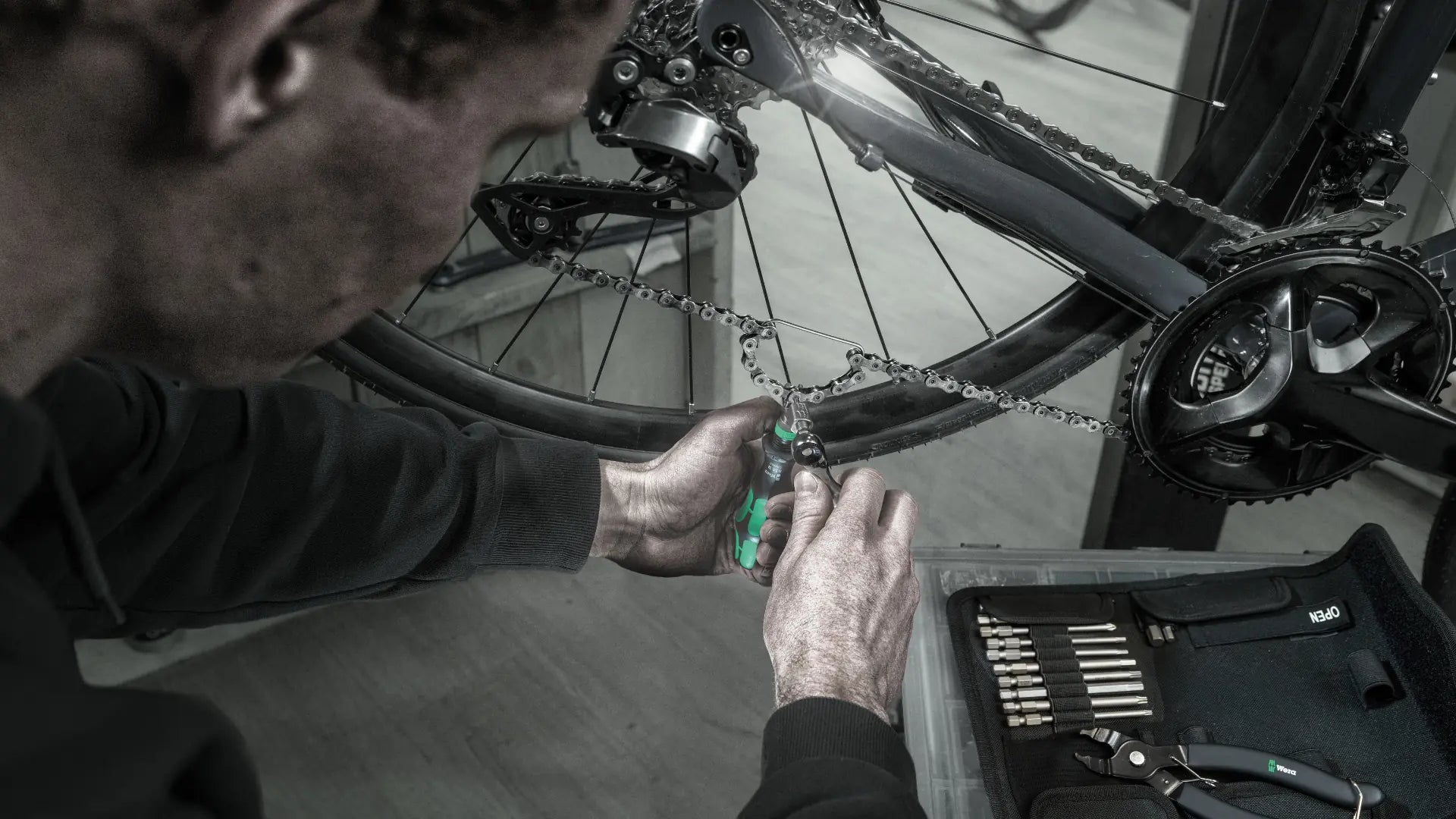 Besonders praktisch: Unser präziser Wera Kettennieter ist für Ketten von Single-Speed- bis 12-fach geeignet und wird ergänzt durch den dazugehörigen Kettenhalter, der Dir das Öffnen, Schließen oder Kürzen Deiner Kette deutlich erleichtern. Mit diesem Werkzeug Set bist Du bestens gewappnet, wenn du deine bestehende Kette pflegen oder eine neue Kette einbauen möchtest - so erledigst Du Wartungen oder Reparaturen in gewohnter Wera Präzision!