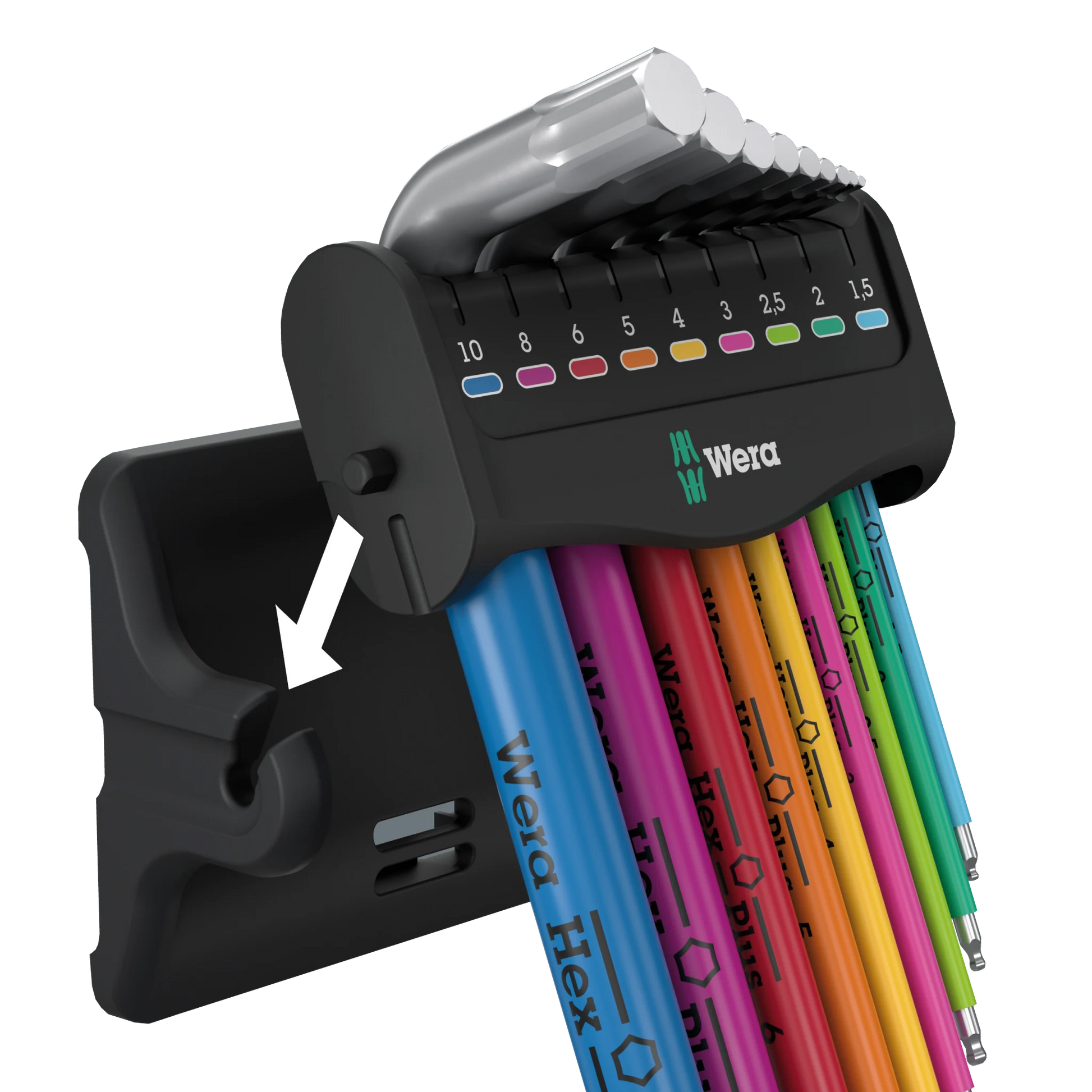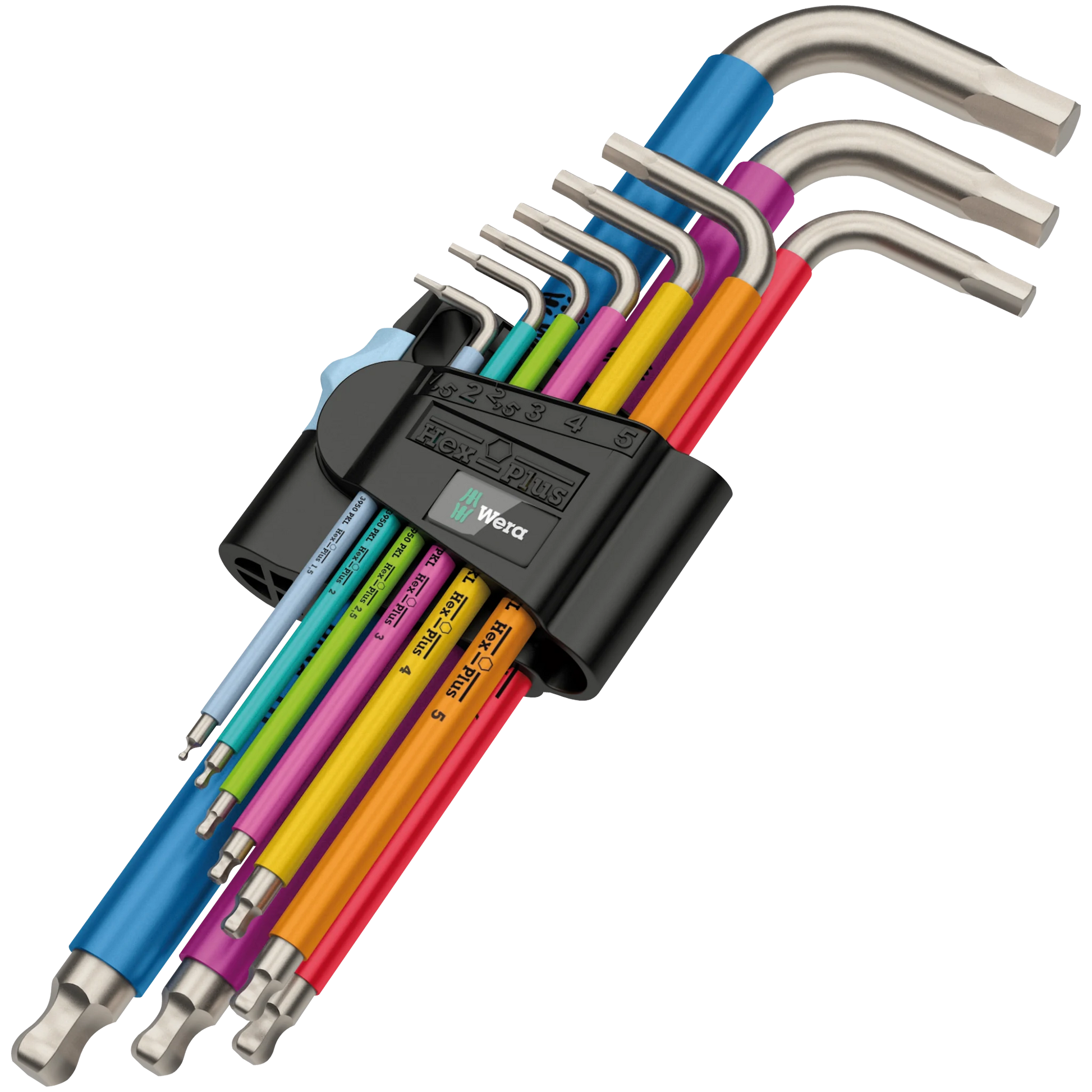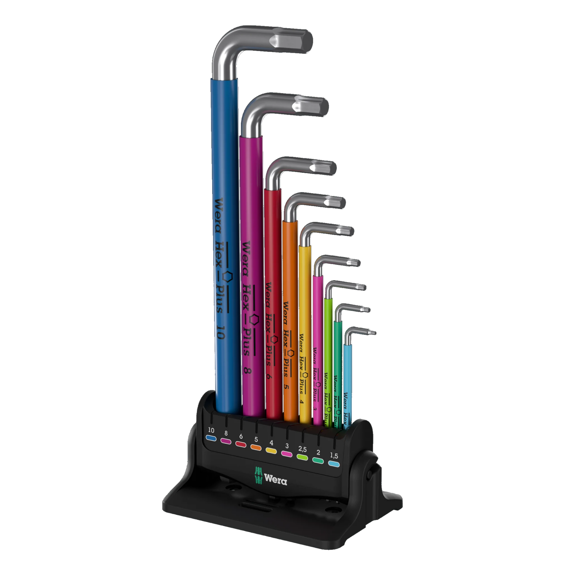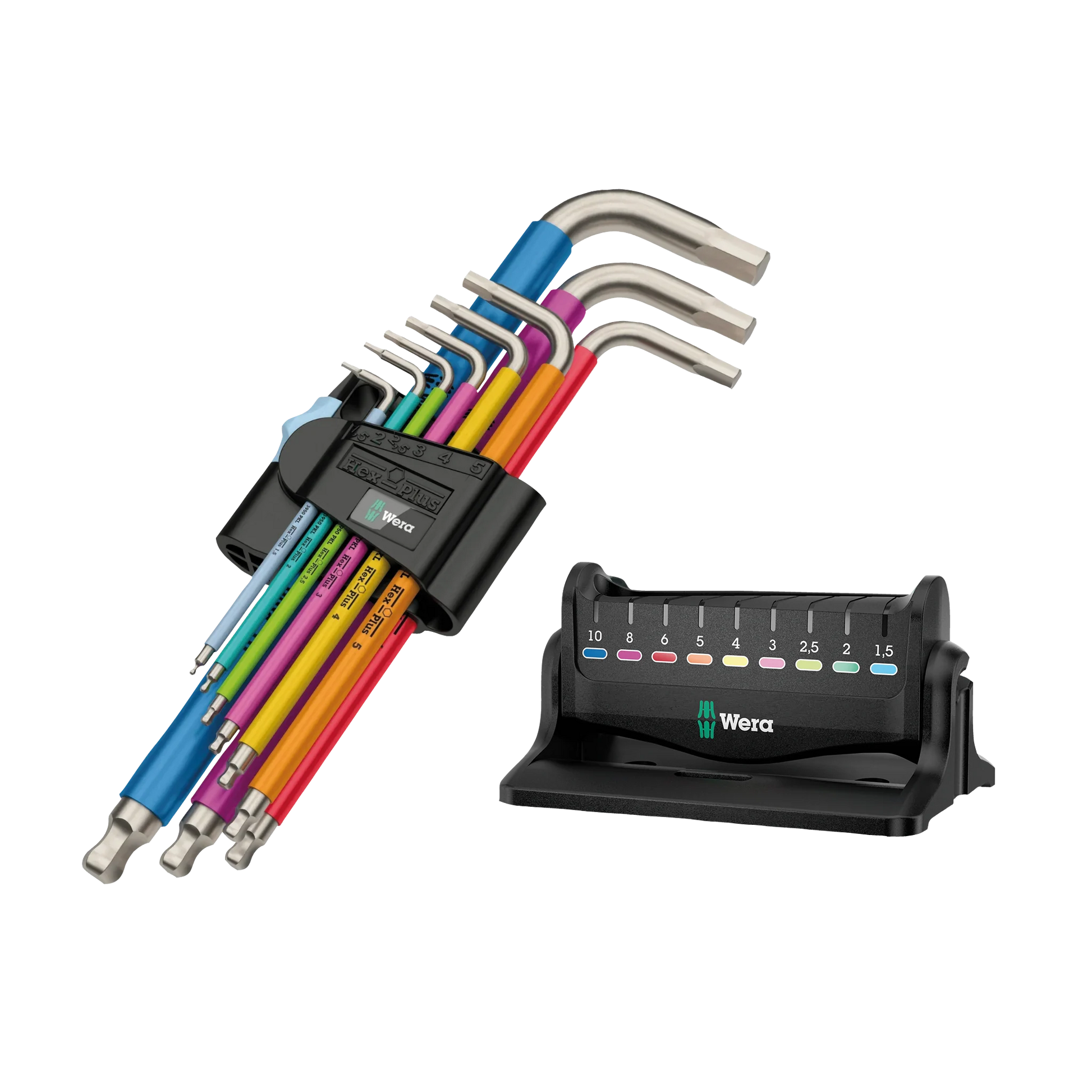 Unser Innensechskant Winkelschlüssel Edelstahl Set bietet Dir höchste Qualität und Funktionalität für präzises Arbeiten. Die hochwertigen, aus Edelstahl gefertigten Innensechskantschlüssel sorgen für die Langlebigkeit von Werkzeug und Schrauben. Unser spezielles Hex-Plus-Design bietet eine größere Anlagefläche im Schraubenkopf. Dadurch reduziert sich eine mögliche Zerstörung des Schraubenkopfes merklich und auch bei bereits abgenutzten Schrauben besteht noch eine Chance, diese zu lösen. Mit dem Kugelkopf am langen Schenkel kannst Du problemlos leicht um die Ecke und an schwierig erreichbaren Stellen arbeiten. "Take it easy" nennen wir unser System der Farbkennzeichnung nach Größen. Es hilft Dir, schnell das richtige Werkzeug zu finden. Im Handumdrehen kennst Du die benötigten Farben zu den Größen auswendig. Die aufklappbare Halterung ist praktisch für unterwegs und für zuhause. Zusätzlich liegt dem Set ein Winkelschlüsselclip bei, mit dem man die Innensechskantschlüssel hinstellen oder an der Wand befestigen kann.